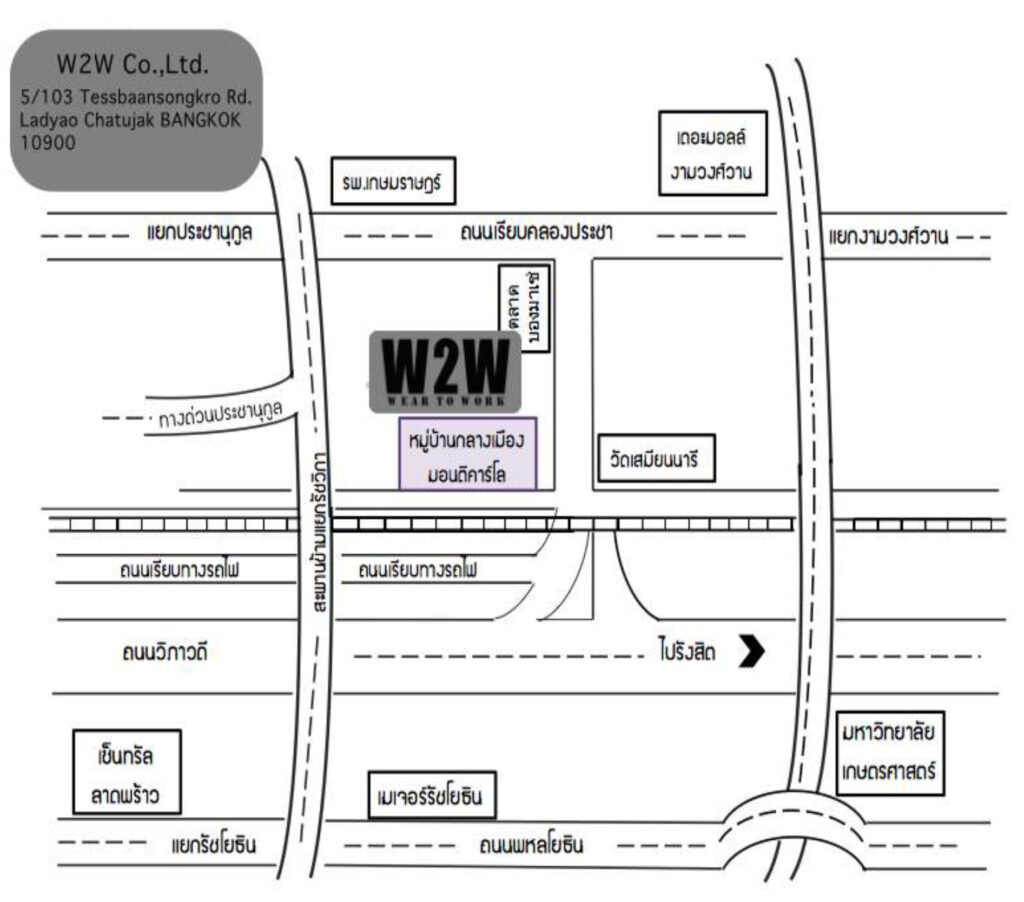 Facebook Youtube Envelope Instagram Line Contact Head Office W2W Co., Ltd. 5/103 Tessabaansongkro Road Ladyao,Chatujak,Bangkok 10900 Tel : +66 2 196 2011 Mobile: 081-933-2622 (K.Wee), 080-269-6660 (K.Khun) Email : weartoworkw2w@gmail.com Chat line : @weartowork